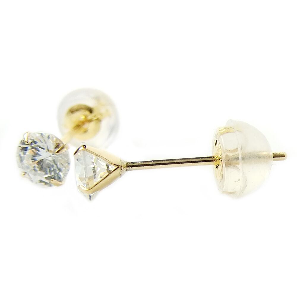 ピアス キュービックジルコニア K18 イエローゴールド ロングポスト 片側0.25ctサイズ シリコン製ダブルロックキャッチ スタッド 一粒留め 左右セット シンプル