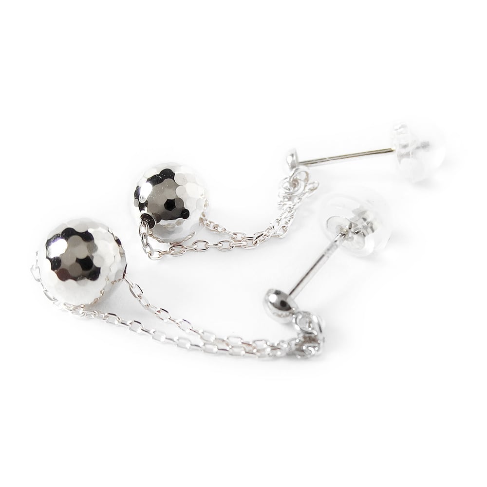 ピアス チェーン カットボール プラチナ Pt900 地金 シンプル スタッド 左右セット レディース ダブルロックキャッチ