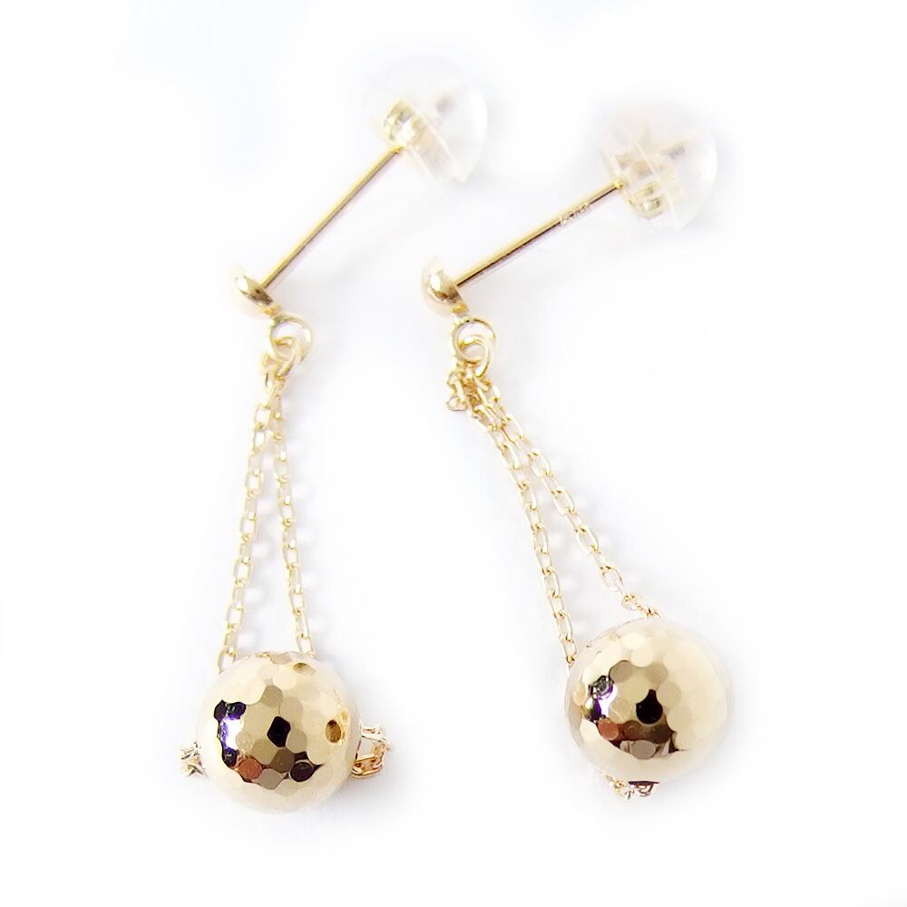 ピアス チェーン カットボール K18 イエローゴールド 地金 シンプル スタッド 左右セット レディース ダブルロックキャッチ