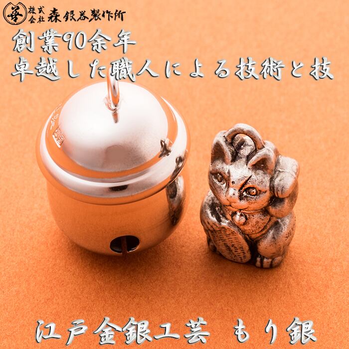 銀製品 日本製品 Made in Japan 伝統工芸品 森銀器 もり銀 験担ぎ ハンドメイド 手作り ストラップ アクセサリー 通販 誕生日 クリスマス プレゼント 結婚記念日 贈答品 贈り物 ギフト 鈴 スズ すず 置物 根付 ねつけ 携帯ストラップ 厄除 開運 御守