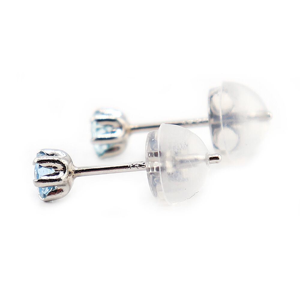 ピアス アクアマリン プラチナ Pt900 3月 誕生石 バースデー シンプル スタッド 左右セット レディース シリコン製ダブルロックキャッチ